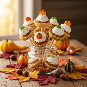 Mini pumpkin pies on sticks are a kid-friendly twist on the Thanksgiving classic.