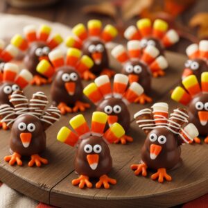 Use pretzel twists as turkey bodies, dip them in chocolate, and decorate with candy eyes and candy corn feathers.