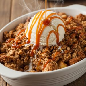 Ingredients: Apples, brown sugar, oats, cinnamon, butter, and flour.