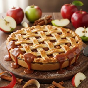 Ingredients: Apples, caramel sauce, sugar, cinnamon, butter, and pie crust.