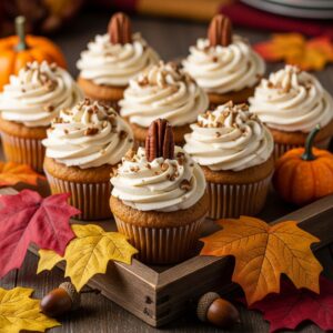 Moist maple-flavored cupcakes topped with butter pecan frosting bring all the fall flavors in one bite.