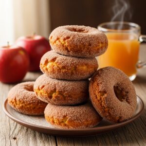 These baked (or fried) donuts are infused with apple cider and coated in cinnamon sugar.