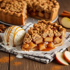 Fresh apples, sugar, and cinnamon fill a buttery crust, while the crumb topping adds a crunchy texture.