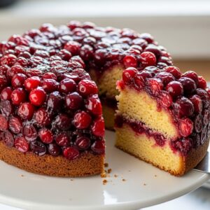 This festive cake flips the script with tart cranberries caramelized under a buttery cake layer.