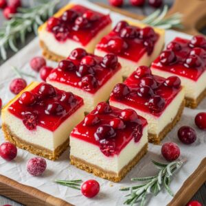 Tangy cranberry sauce layered over creamy cheesecake bars creates a delightful balance of sweet and tart.