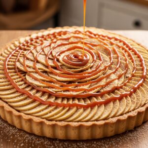 Crisp apples arranged over a puff pastry crust and drizzled with caramel sauce make this dessert elegant yet easy.