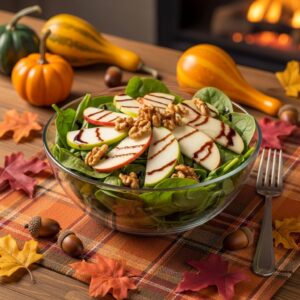 A fresh mix of spinach, apple slices, and walnuts tossed in a tangy vinaigrette — sweet, crisp, and heart-healthy.