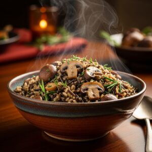 A hearty, fiber-filled side with wild rice, sautéed mushrooms, and herbs.