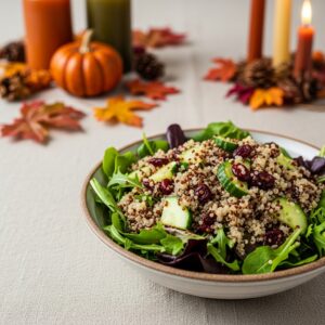 This protein-packed salad blends nutty quinoa, dried cranberries, and crunchy vegetables for a refreshing Thanksgiving side.