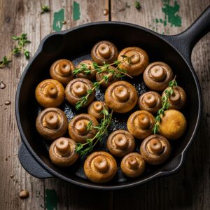 Rich, buttery mushrooms cooked with thyme and garlic — earthy and savory.
