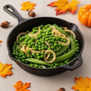 Quick and easy — peas and onions sautéed with olive oil and seasoning make a bright green side.