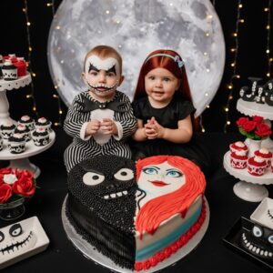 If you love The Nightmare Before Christmas and want a creative way to celebrate a baby’s first birthday or a themed photo shoot, a Nightmare Before Christmas cake smash is the perfect blend of spooky fun and sweet chaos.