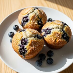 Light, fluffy muffins bursting with juicy blueberries.
