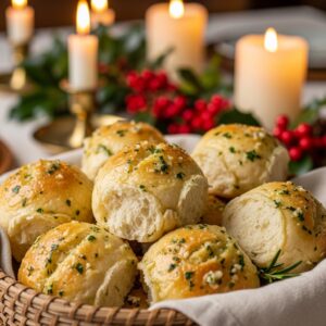 Soft, fluffy rolls brushed with garlic butter—perfect for mopping up gravy.