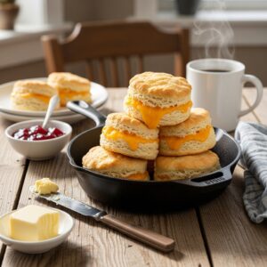 Fluffy biscuits baked with cheese and herbs—a savory morning favorite.