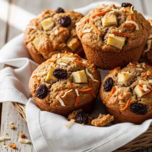 Loaded muffins with carrots, apples, raisins, and coconut—nutritious and delicious.
