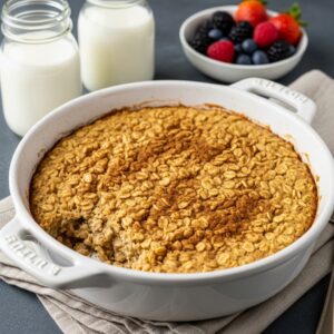 Warm, soft-baked oats with cinnamon—meal-prep friendly breakfast.