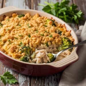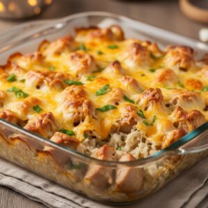 A creamy, hearty classic with tender chicken, rice, and rich sauce baked to perfection.