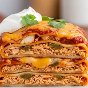 A Mexican-inspired favorite layered with tortillas and cheese.