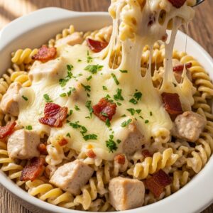 Mix cooked pasta, chicken, ranch, bacon, and cheese.