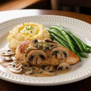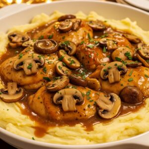 Savory mushrooms and tender chicken in a creamy, flavorful sauce.