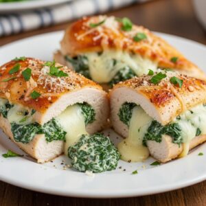 Tender chicken breasts filled with creamy spinach and cheese — an elegant yet easy dinner.