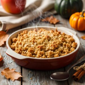 Warm, cinnamon-spiced baked apples topped with a crispy oat crumble.