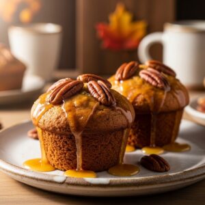 Sweet muffins with maple syrup flavor and crunchy pecan topping.