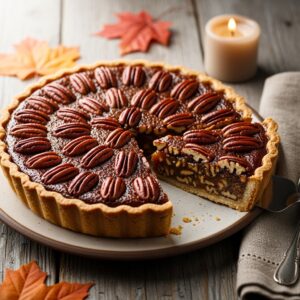 Rich, gooey, and nutty pie with a buttery crust and caramelized filling.
