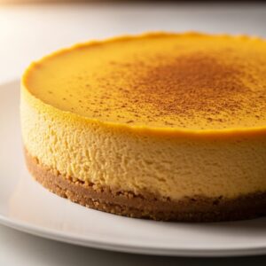 Creamy cheesecake with pumpkin puree, perfect for Thanksgiving dinner.