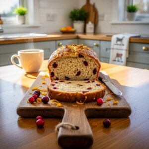 Moist, tangy loaf with cranberries and orange zest for a festive touch.