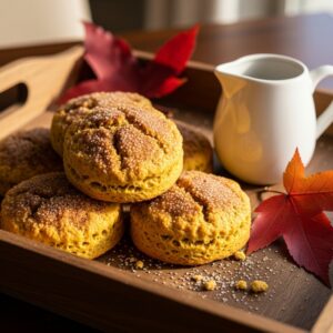 Soft scones flavored with pumpkin and warm spices, perfect with coffee.
