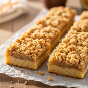 Sweet apple bars with buttery crust and cinnamon sugar topping.