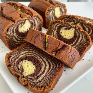 A beautiful swirl of vanilla and chocolate batter with hidden zucchini.