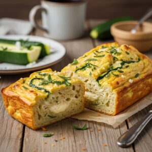 A non-sweet bread flavored with herbs, cheese, and shredded zucchini.