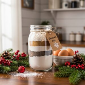 Instructions: Combine ingredients and pour into jars. Add a note explaining how to mix with eggs and milk to make a fresh batch of pancakes.