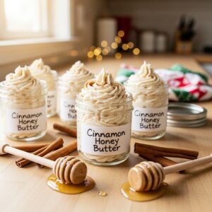 Instructions: Whip softened butter with honey, cinnamon, and vanilla until fluffy. Spoon into jars and refrigerate.