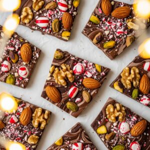 Ingredients: Dark or white chocolate, nuts, dried fruit, candy canes.