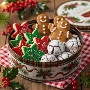 A festive assortment of homemade cookies packaged in a holiday tin is a timeless and heartwarming gift.