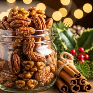 Sweet, crunchy, and perfectly spiced, these nuts are ideal for gifting and snacking. The cinnamon and brown sugar coating makes them irresistibly festive.