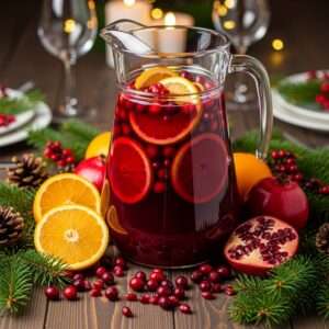 Perfect for parties, Christmas punch typically combines cranberry juice, orange juice, rum or vodka, and sparkling water.