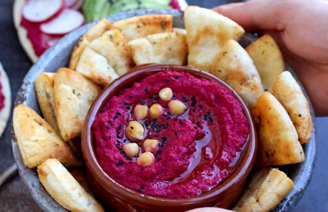 Looking for a spooky yet healthy Halloween appetizer? This Bloody Beet Hummus with Pita Chips is the perfect dip to
