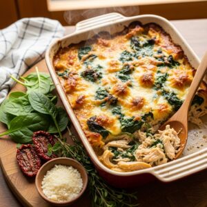 This Chicken Florentine Casserole Recipe is the ultimate comfort food — creamy, cheesy, and packed with wholesome spinach and tender chicken.