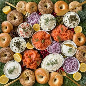 Add a touch of sophistication to your buffet with a smoked salmon bagel bar.