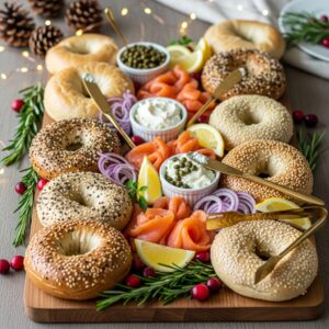 Create a simple yet elegant brunch spread with a smoked salmon bagel board.
