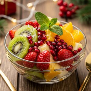 For a lighter option, a fresh fruit salad adds color and balance to your table.