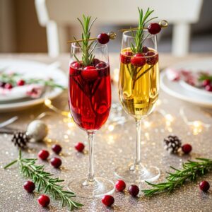 Mix champagne with cranberry or pomegranate juice instead of traditional orange juice, and garnish with rosemary and berries.