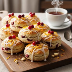These buttery scones are crisp on the outside and tender inside, with bursts of tart cranberry and zesty citrus.