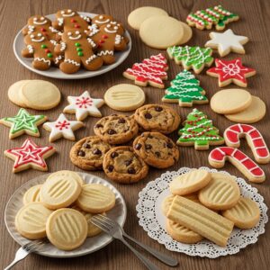 Include a variety of shapes and flavors—sugar cookies, shortbread, snickerdoodles, chocolate chips, and thumbprint cookies.