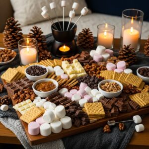 Add mini skewers or fondue sticks so guests can make their own s’mores. Include peppermint bark or caramel squares for fun flavor twists.